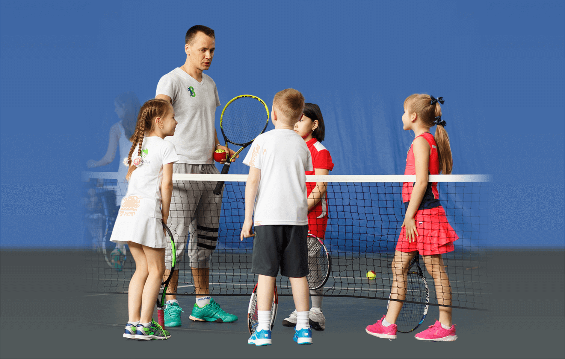состоящую из 8 тренировок (это 1 месячный курс) у каждого тренера, который дает свою технику и физическое качество, в котором он силён, ребенок гарантированно будет расти быстро и обретёт полноценные навыки нужные в теннисе, получит физическую нагрузку для здоровья и правильного развития тела.